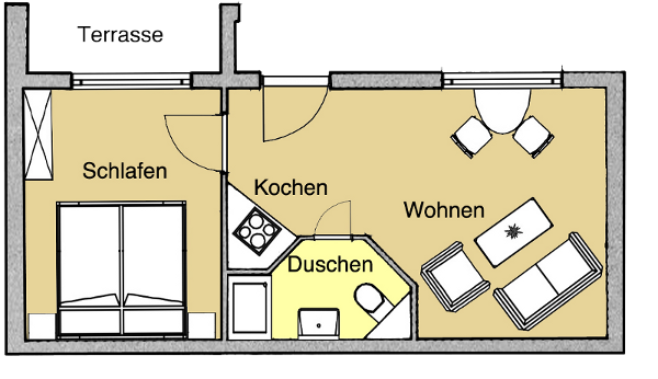 Die Wohnungen beinhalten Flachbild-Fernseher, Telefon, Radiowecker, Geschirrspüler, Föhn, Bademäntel, Küchenzeile sowie die komplette Wäscheausstattung.